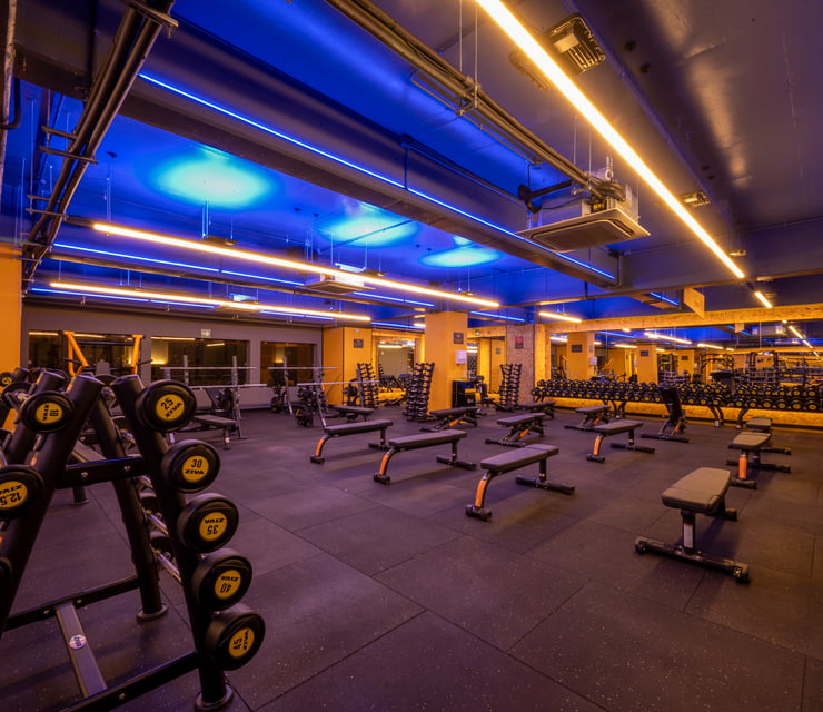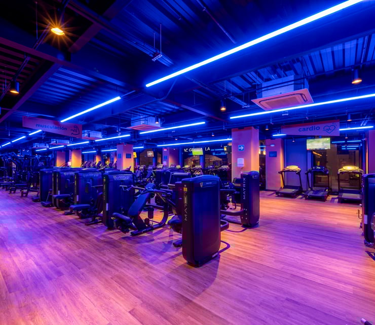Área de peso libre, peso integrado, cardio y clases grupales